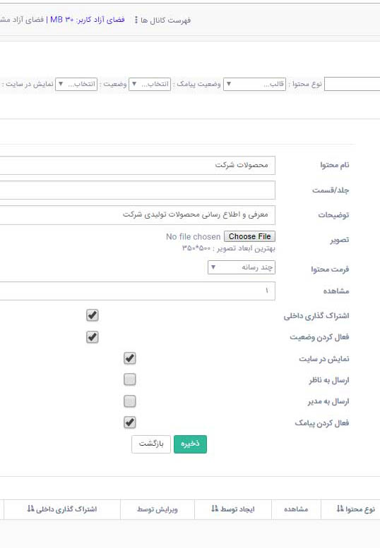 عنوان : تصاویر علامتگذاری شده روش ورود محتوا در سامانه صبا
